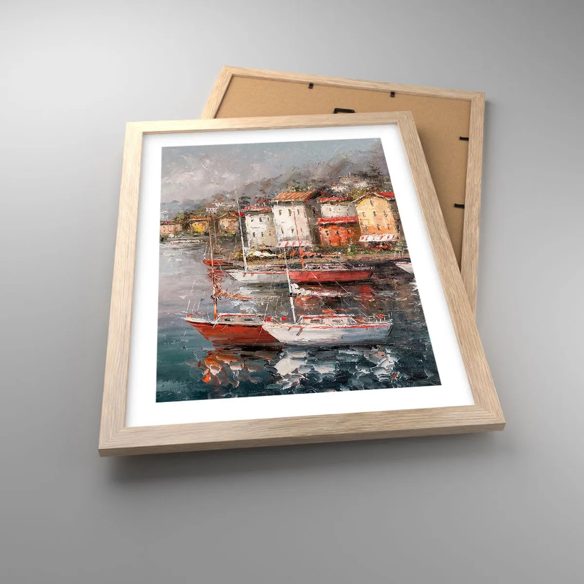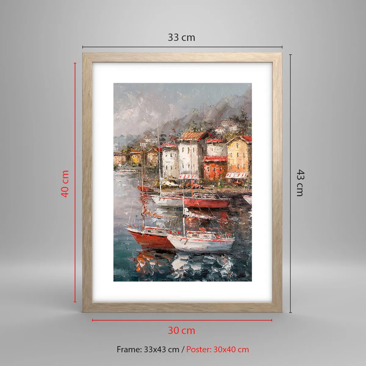 Poszter világos tölgy keretben - Romantikus kikötő - 30x40 cm