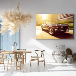 Vászonkép - Egy klasszikus autó mozgásban városi háttér előtt - 70x50cm - 1967 – a legenda visszatér - Modern fali dekoráció nappalihoz és hálószobához ARTTOR