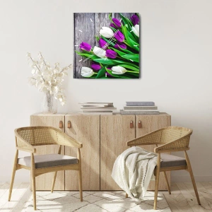 • Virágok, Tulipánok, Virágcsokor, Botanika, Virágok, Irodába, dolgozószobába, étkezőbe, előszobába, nappaliba, hálószobába, Fehér, lila, szürke, Kerek