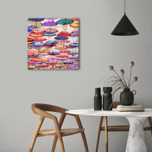 • Város, Színes esernyők, Művészet, Egyéb, Irodába, dolgozószobába, étkezőbe, előszobába, nappaliba, hálószobába, Színes, Kerek