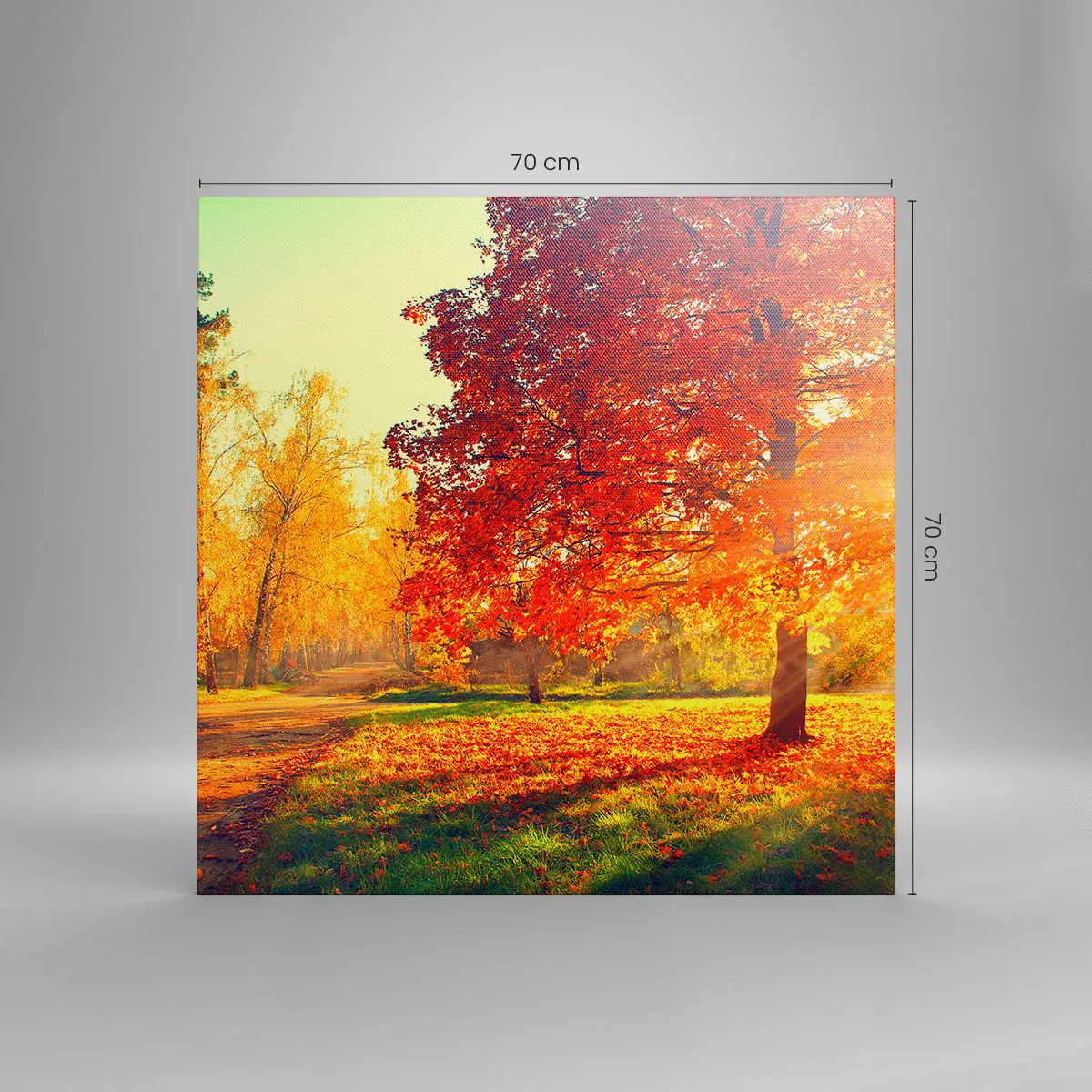 A vászon a keretre van feszítve. Az oldalak és a szélek nyomtatva vannak, a kép folytatását alkotva. A kép készen áll a falra akasztásra. Minden termékhez tartozik egy, a kerethez rögzített akasztó és egy rögzítőkészlet (csavar + dübel).