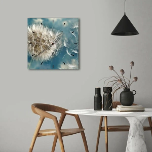 Falióra, Óra - Pitypang lebegő magokkal a kék égen - 30x30cm - Angyal lehelete - Modern fali dekoráció nappalihoz, konyhához és hálószobához ARTTOR