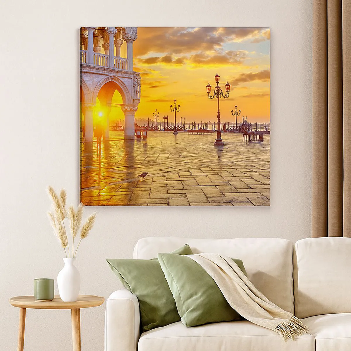 A vászon a keretre van feszítve. Az oldalak és a szélek nyomtatva vannak, a kép folytatását alkotva. A kép készen áll a falra akasztásra. Minden termékhez tartozik egy, a kerethez rögzített akasztó és egy rögzítőkészlet (csavar + dübel).