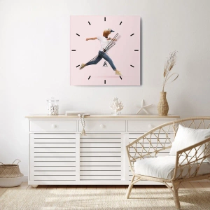 Az óra 4 mm vastag biztonsági üvegből készül. Az óra gyártási technológiája megfelel a PN-EN 12600: 2004 szabvány szerinti 2B2 biztonsági osztálynak, amely garantálja az ütésállóságot. Az üvegen lévő óra felakasztható - az óra hátuljára fém akasztó van rögzítve, és egy habtávolság szabályozza az óra és a fal közötti egyenletes távolságot. Az óra csendes úszó mechanizmussal rendelkezik, amely 1,5 V-os elemmel működik - AA elemmel (az elem nem tartozék).