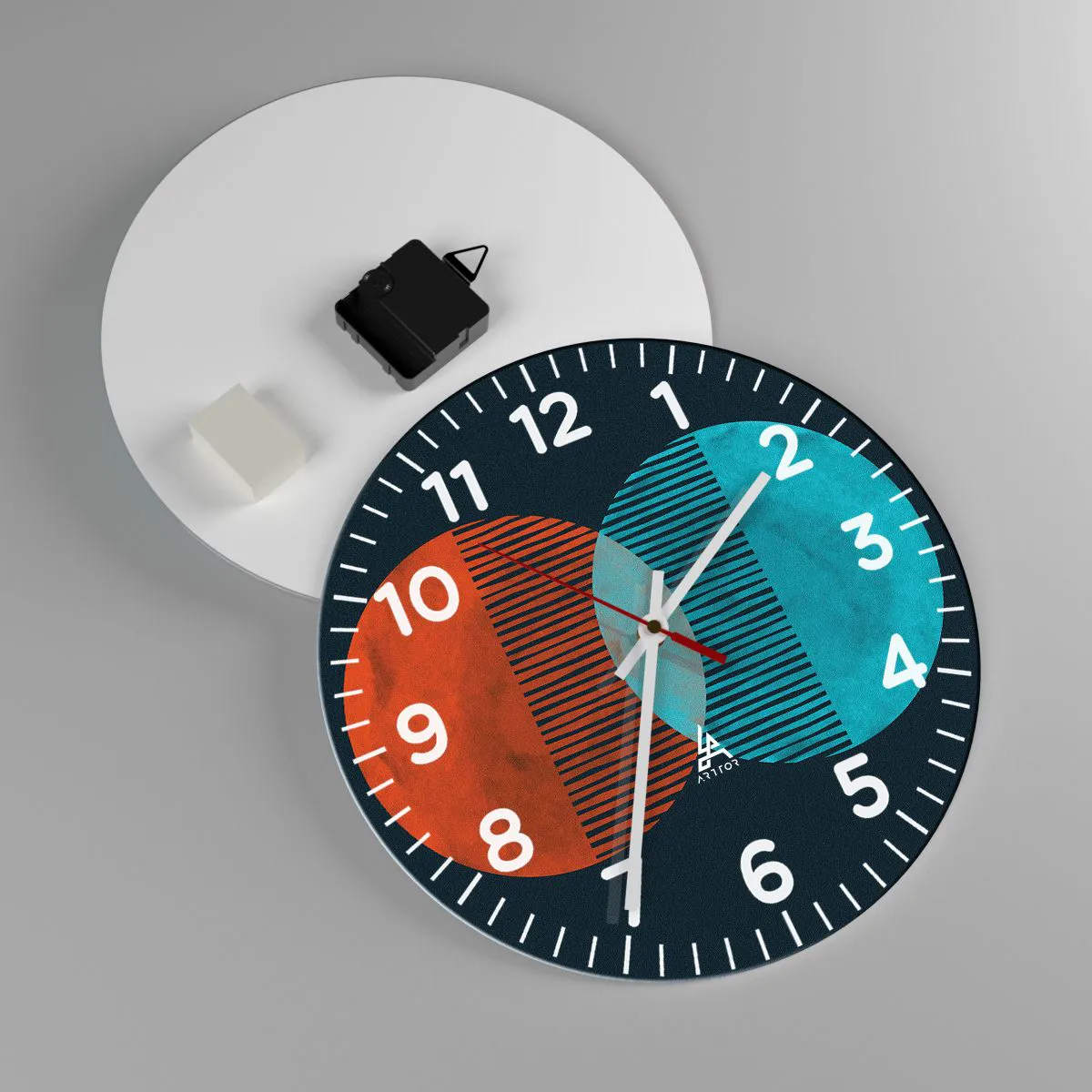 Az óra 4 mm vastag biztonsági üvegből készül. Az óra gyártási technológiája megfelel a PN-EN 12600: 2004 szabvány szerinti 2B2 biztonsági osztálynak, amely garantálja az ütésállóságot. Az üvegen lévő óra felakasztható - az óra hátuljára fém akasztó van rögzítve, és egy habtávolság szabályozza az óra és a fal közötti egyenletes távolságot. Az óra csendes úszó mechanizmussal rendelkezik, amely 1,5 V-os elemmel működik - AA elemmel (az elem nem tartozék).