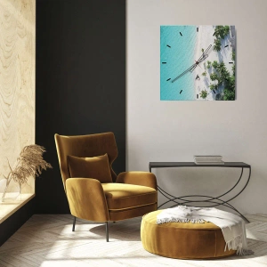 Falióra, Óra - Felülnézetből a strand türkizkék vízzel és pálmafákkal - 30x30cm - Nyaralás a paradicsomban - Modern fali dekoráció nappalihoz, konyhához és hálószobához ARTTOR