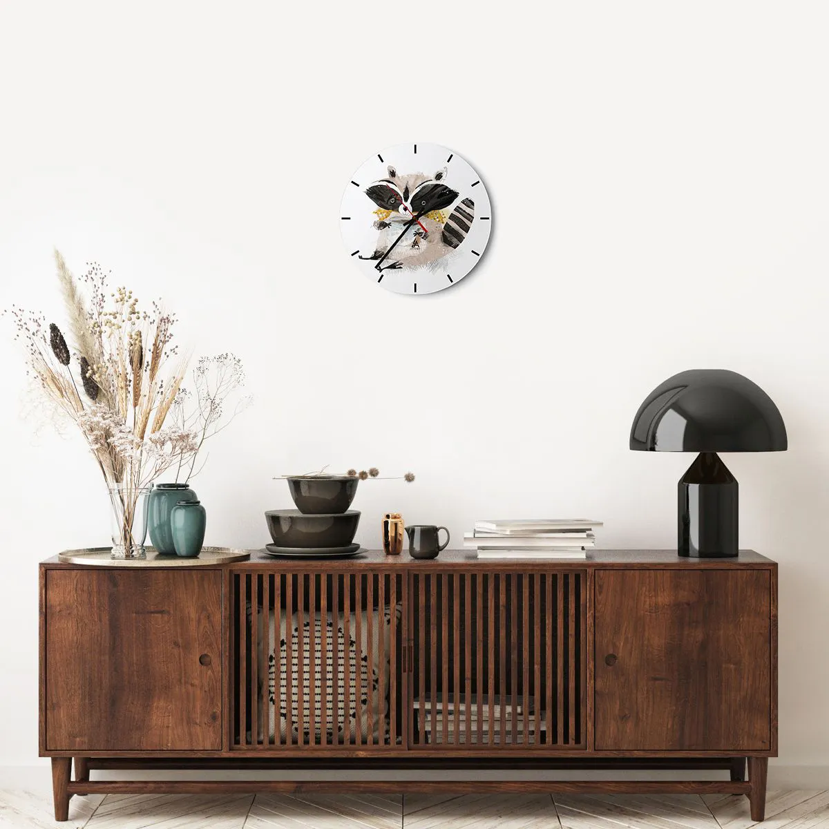 - Ez a falióra egy bájos illusztrációval díszített, amely egy mosómedvét ábrázol, amint egy pohár italt tart a kezében. Ez a meleg és barátságos dizájn tökéletes egy gyerekszobába, vagy otthonod bájos kiegészítőjeként is szolgálhat.