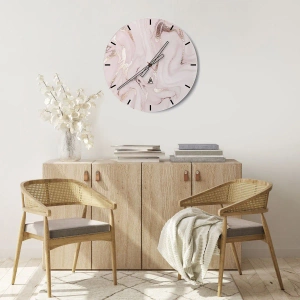- Egy kerek, 30x30 cm-es üvegóra világos rózsaszín márvány mintával és finom arany erekkel, amely tökéletes elegáns és modern enteriőrökbe.