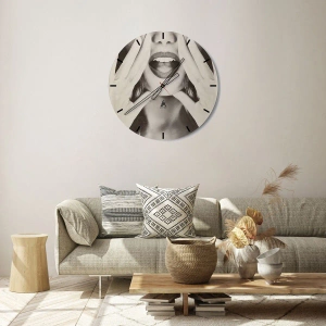 - Ez a falióra egy női ajkak és kezek művészi portréját ábrázolja szépia tónusban. Tökéletes dekoráció elbűvölő, loft vagy modern enteriőrökbe, kifejező és eleganciát kölcsönözve.