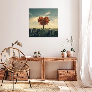 - Egy festmény, amely egy magányos, szív alakú fát ábrázol, amely egy mezőn növő, kidőlt fatörzsek által körülvéve. A remény és az élet szimbóluma, tökéletesen kiegészíti a természetes és minimalista belső tereket, mélységet és érzelmeket kölcsönözve a t...