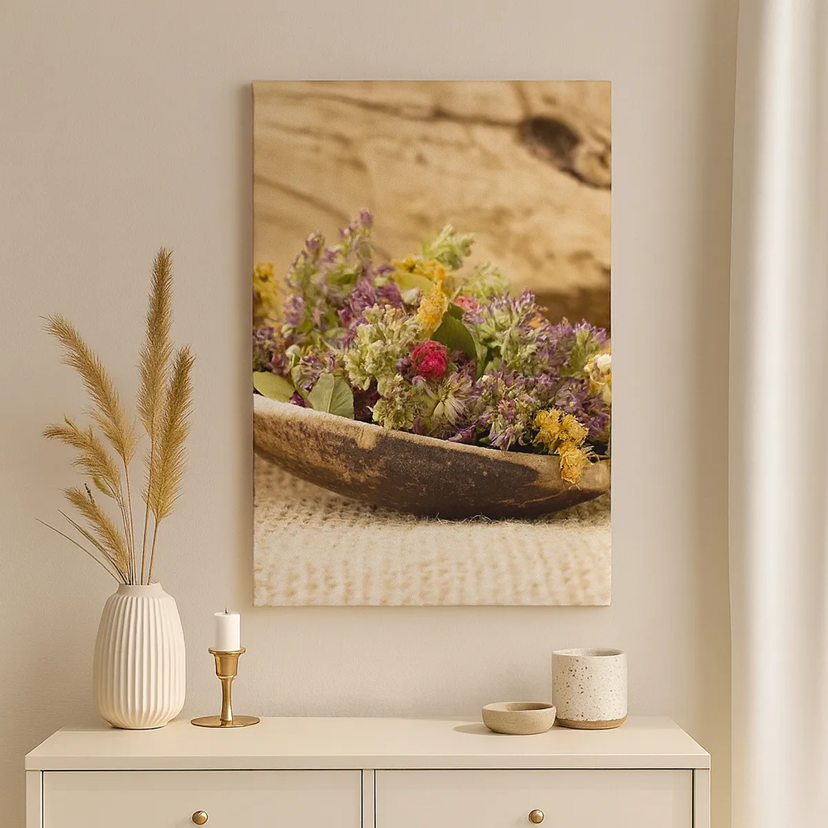 Vászonkép - Színes virágok és illatos gyógynövények - 50x70 cm