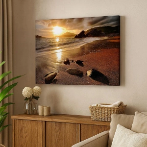 A vászon a keretre van feszítve. Az oldalak és a szélek nyomtatva vannak, a kép folytatását alkotva. A kép készen áll a falra akasztásra. Minden termékhez tartozik egy, a kerethez rögzített akasztó és egy rögzítőkészlet (csavar + dübel).