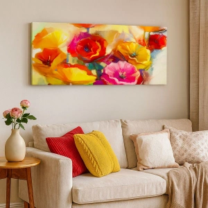 A vászon a keretre van feszítve. Az oldalak és a szélek nyomtatva vannak, a kép folytatását alkotva. A kép készen áll a falra akasztásra. Minden termékhez tartozik egy, a kerethez rögzített akasztó és egy rögzítőkészlet (csavar + dübel).