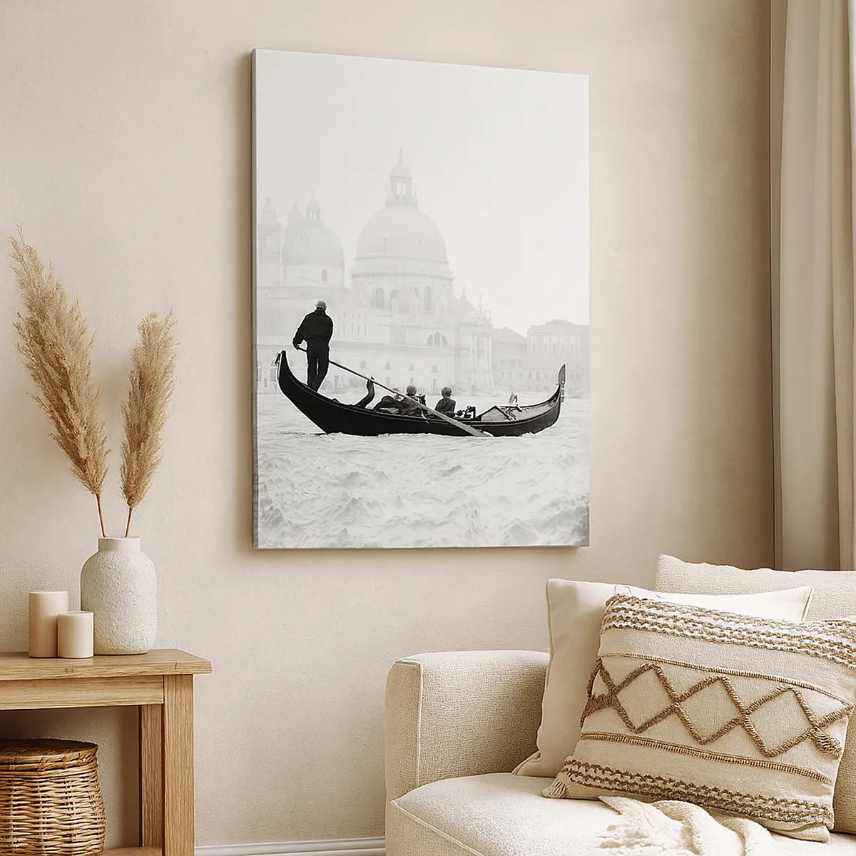 A vászon a keretre van feszítve. Az oldalak és a szélek nyomtatva vannak, a kép folytatását alkotva. A kép készen áll a falra akasztásra. Minden termékhez tartozik egy, a kerethez rögzített akasztó és egy rögzítőkészlet (csavar + dübel).