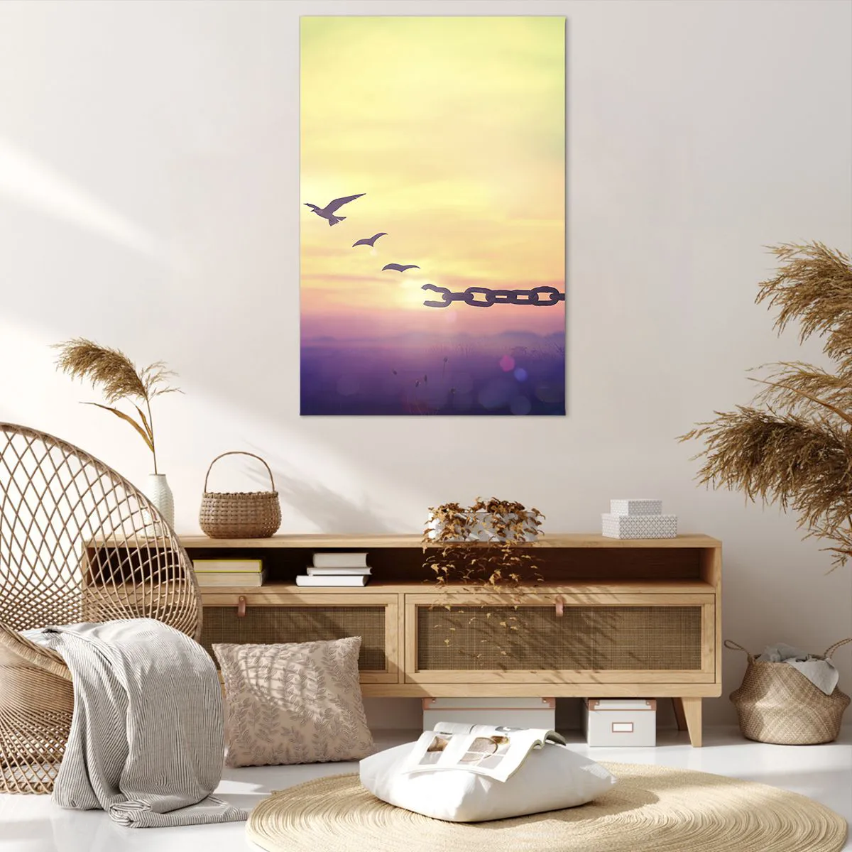 • Absztrakt, Madarak, Művészet, Táj, Természet, Állatok, Irodába, dolgozószobába, étkezőbe, előszobába, nappaliba, hálószobába, Lila, narancs, sárga, Függőleges