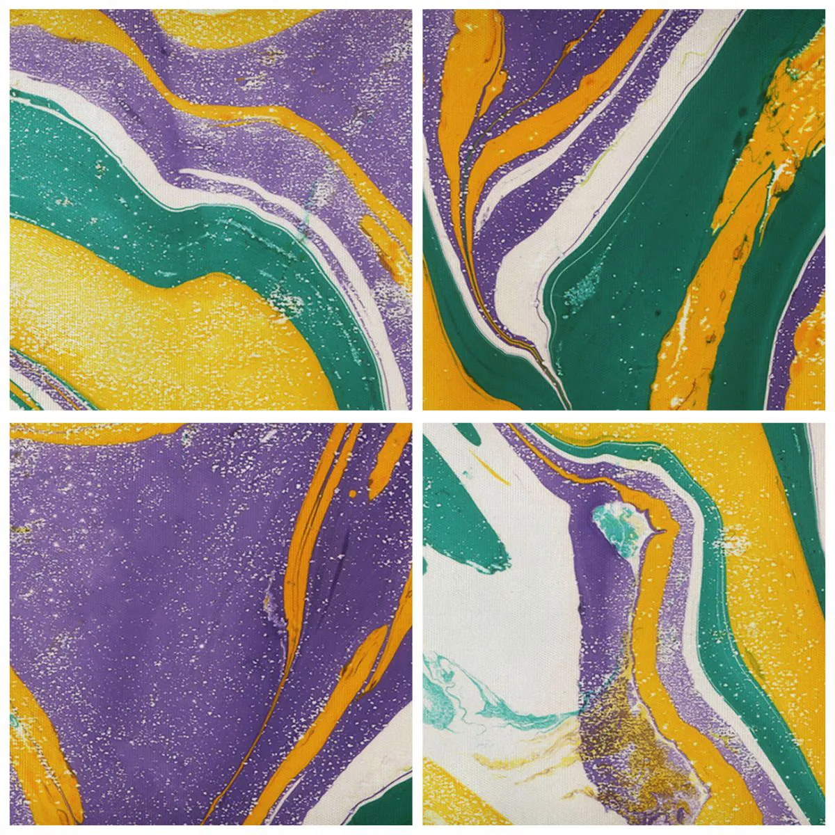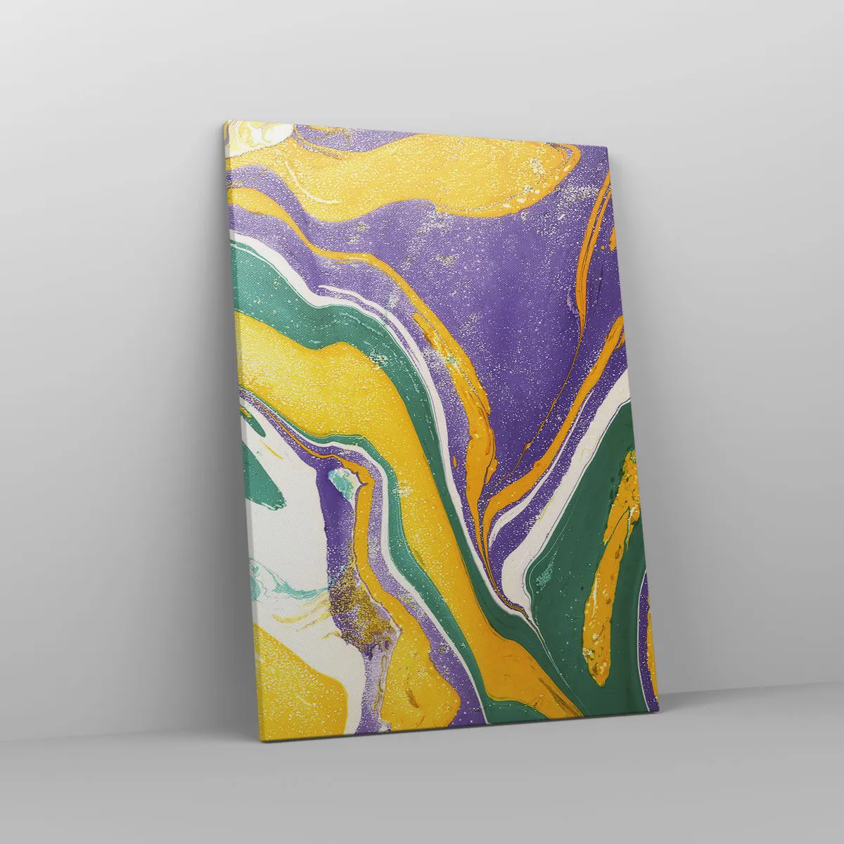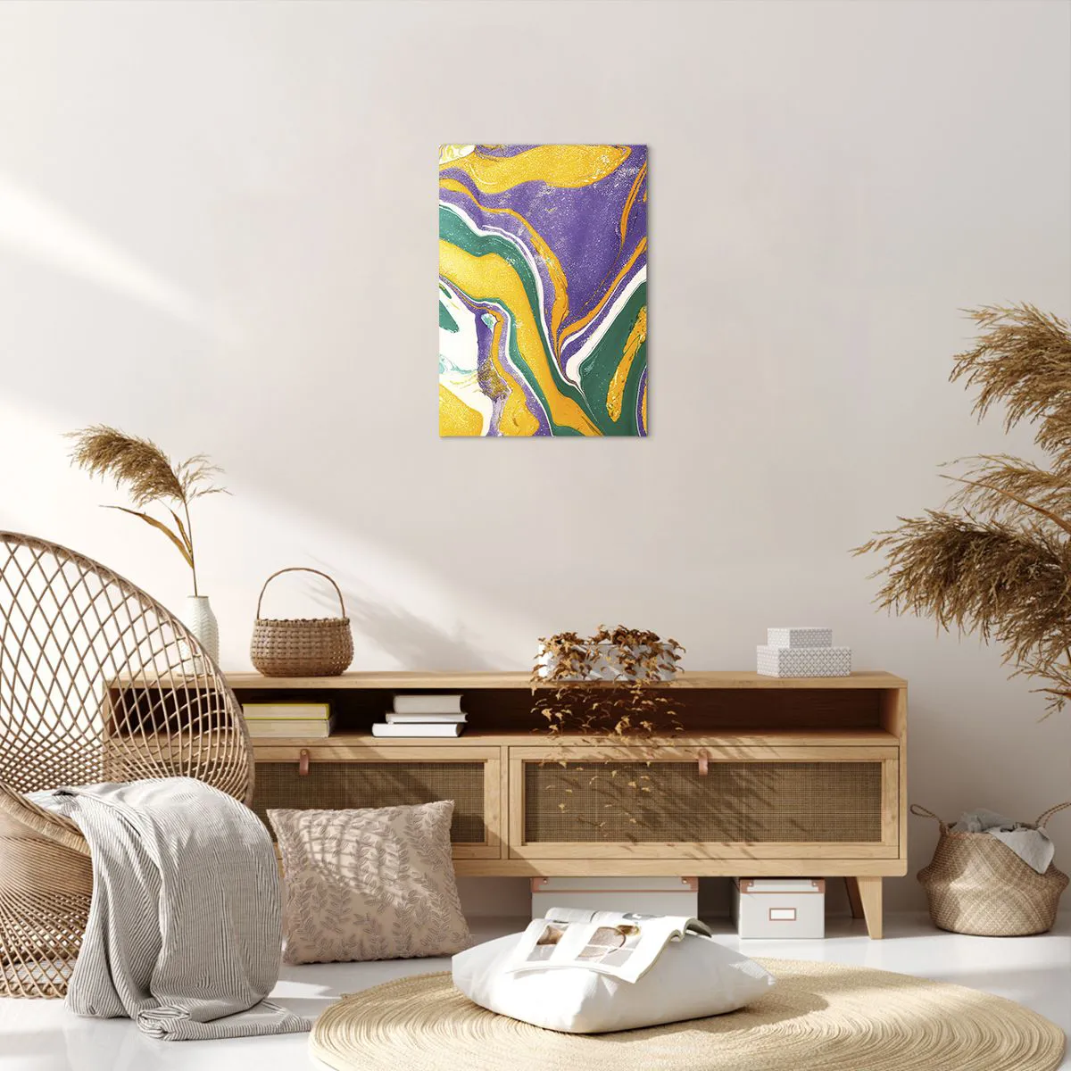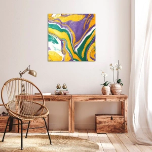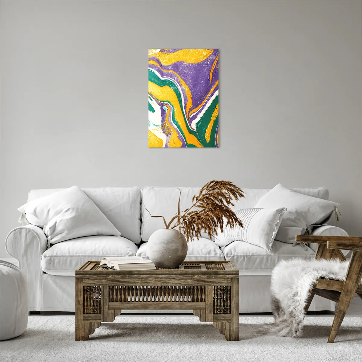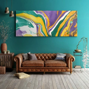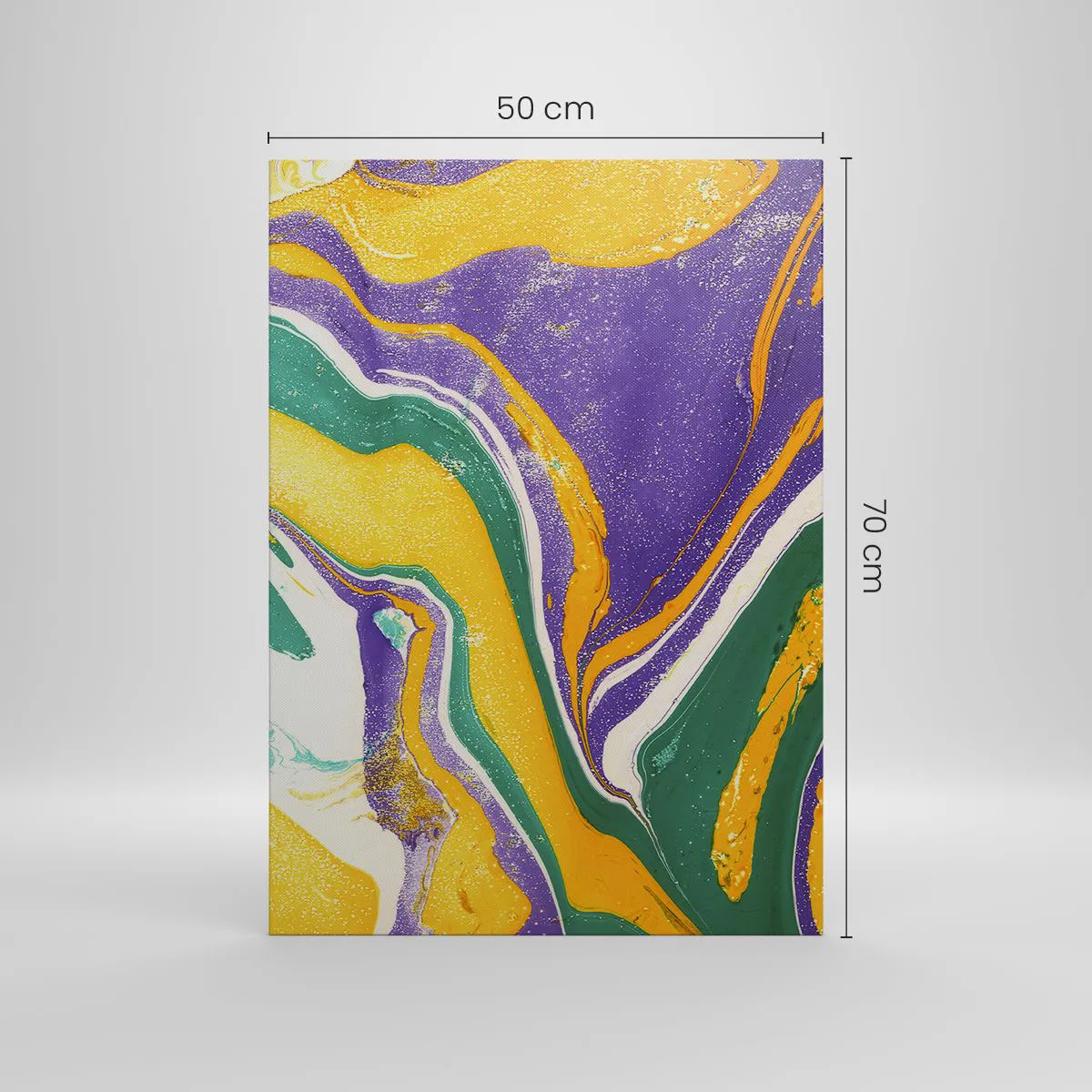 • Absztrakt, művészet, modern minta, Absztrakciók, Irodába, dolgozószobába, étkezőbe, előszobába, nappaliba, hálószobába, Lila, zöld, sárga, színes, Függőleges