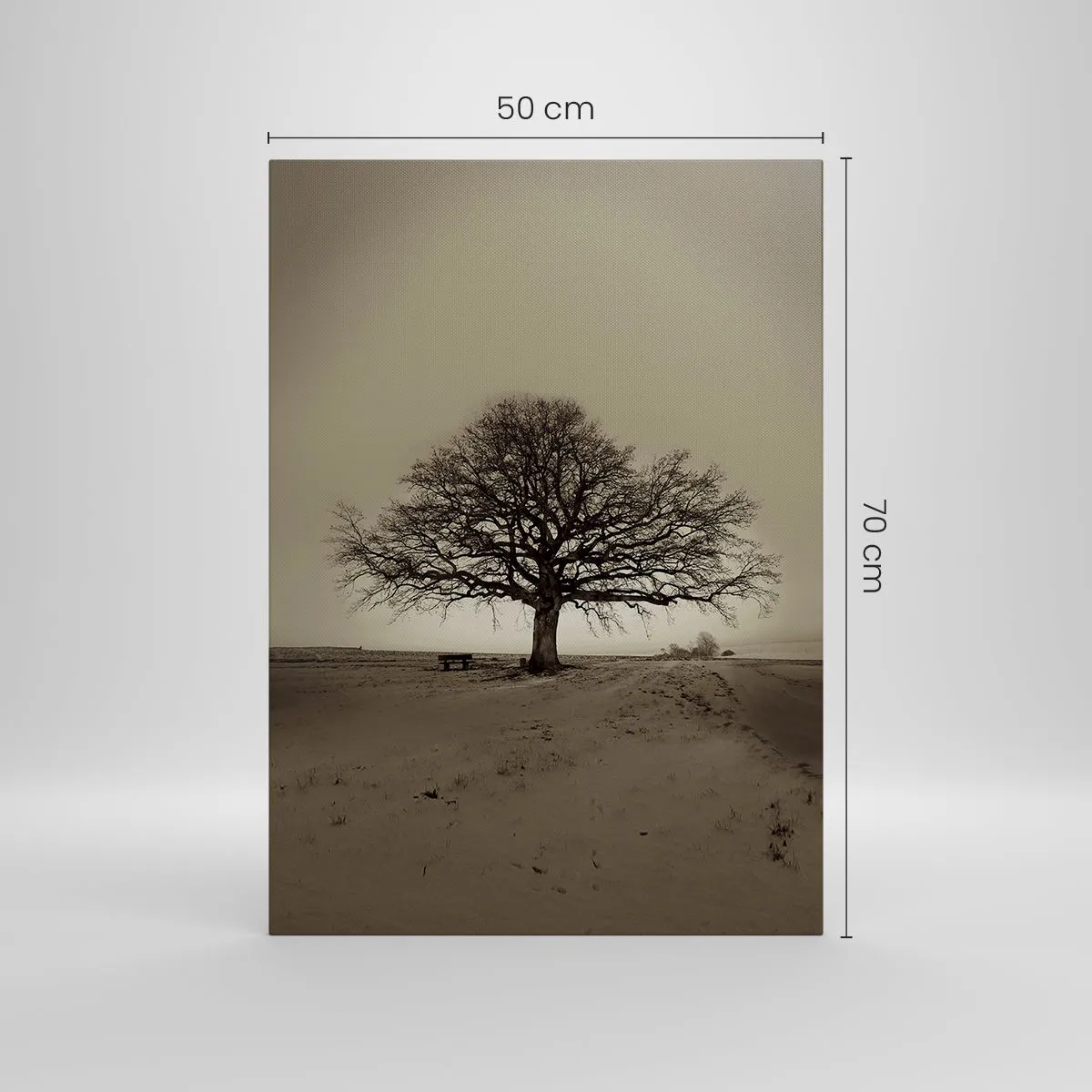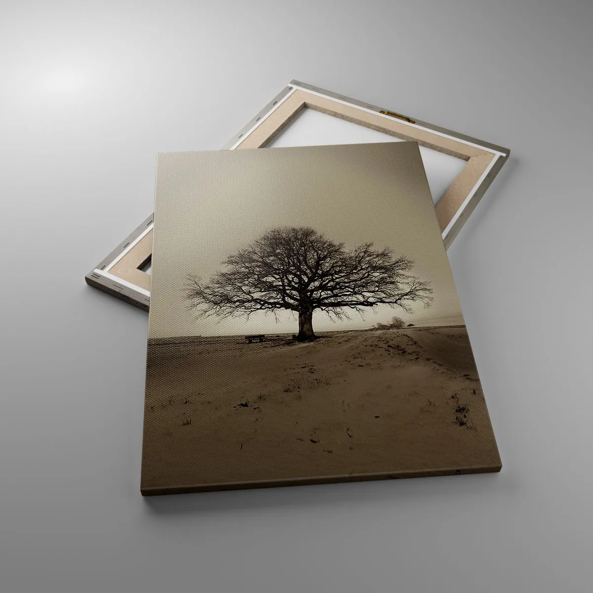A vászon a keretre van feszítve. Az oldalak és a szélek nyomtatva vannak, a kép folytatását alkotva. A kép készen áll a falra akasztásra. Minden termékhez tartozik egy, a kerethez rögzített akasztó és egy rögzítőkészlet (csavar + dübel).