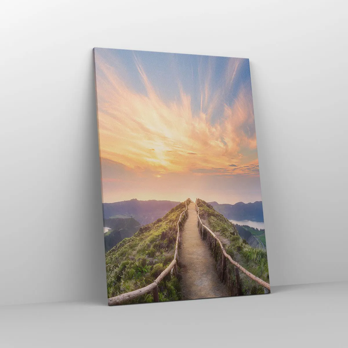 A vászon a keretre van feszítve. Az oldalak és a szélek nyomtatva vannak, a kép folytatását alkotva. A kép készen áll a falra akasztásra. Minden termékhez tartozik egy, a kerethez rögzített akasztó és egy rögzítőkészlet (csavar + dübel).