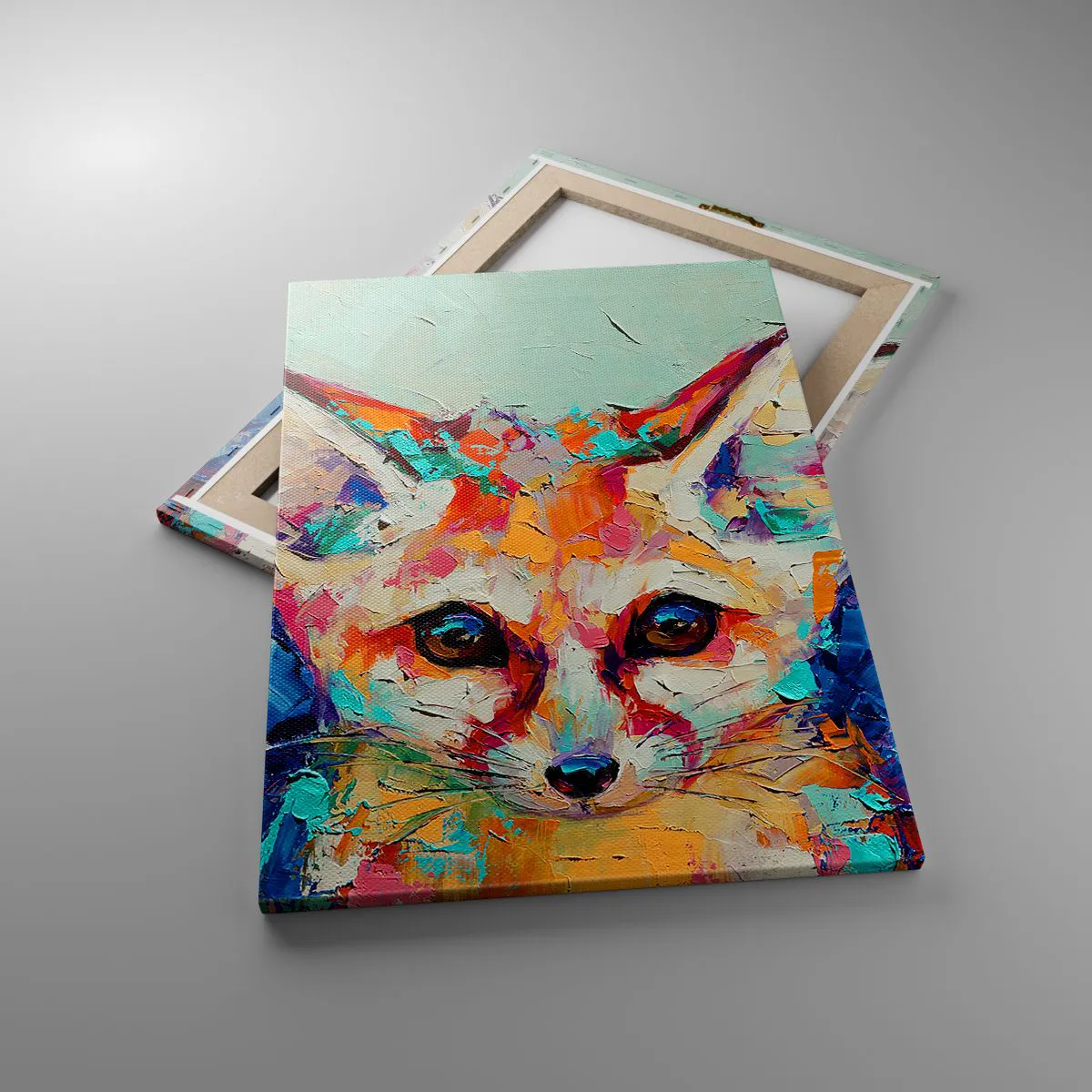 A vászon a keretre van feszítve. Az oldalak és a szélek nyomtatva vannak, a kép folytatását alkotva. A kép készen áll a falra akasztásra. Minden termékhez tartozik egy, a kerethez rögzített akasztó és egy rögzítőkészlet (csavar + dübel).