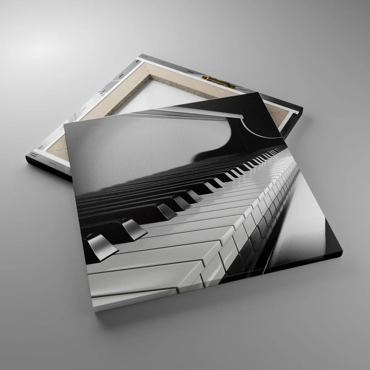 A vászon a keretre van feszítve. Az oldalak és a szélek nyomtatva vannak, a kép folytatását alkotva. A kép készen áll a falra akasztásra. Minden termékhez tartozik egy, a kerethez rögzített akasztó és egy rögzítőkészlet (csavar + dübel).