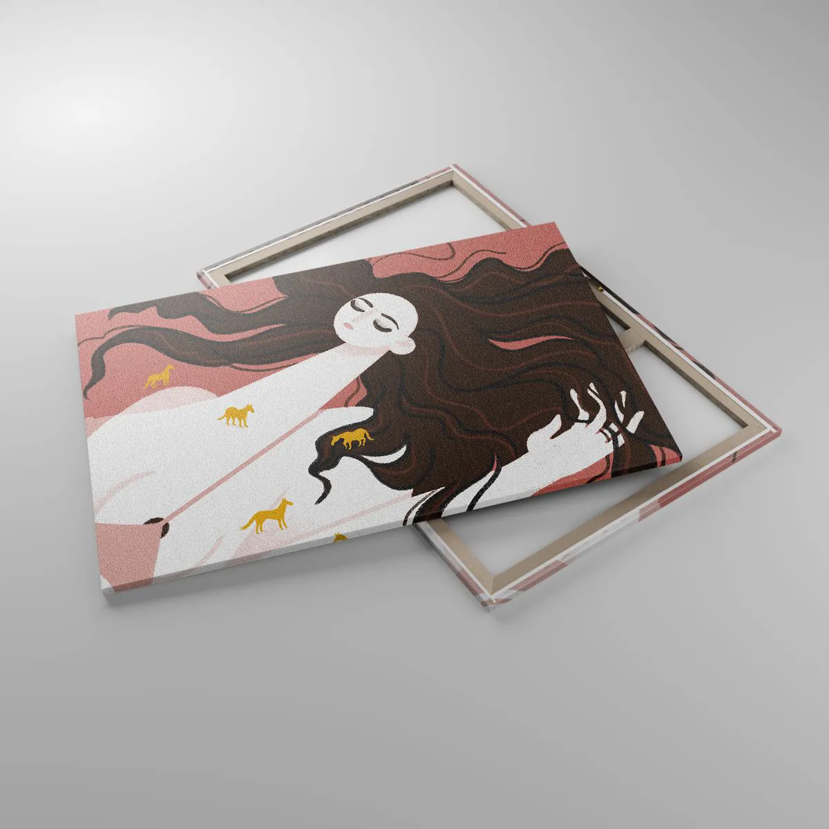 A vászon a keretre van feszítve. Az oldalak és a szélek nyomtatva vannak, a kép folytatását alkotva. A kép készen áll a falra akasztásra. Minden termékhez tartozik egy, a kerethez rögzített akasztó és egy rögzítőkészlet (csavar + dübel).