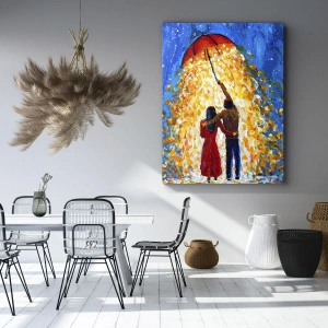- A festmény egy piros esernyő alatt álló párt ábrázol a fénylő esőben, megragadva egy esős este romantikus hangulatát. Tökéletes a melegséggel és érzelemmel teli enteriőrökbe.