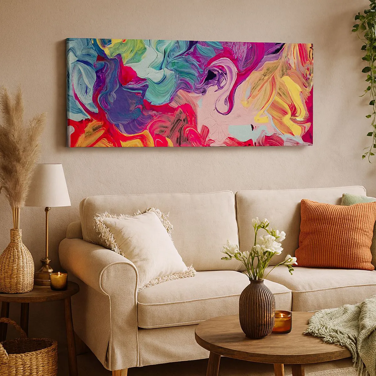 Környezetbarát, szagtalan és tartós, mély színtelítettségű tintákat használunk. A modern nyomtatási technológia precízen helyezi el a nyomatot, miközben megőrzi a vászon látható szerkezetét