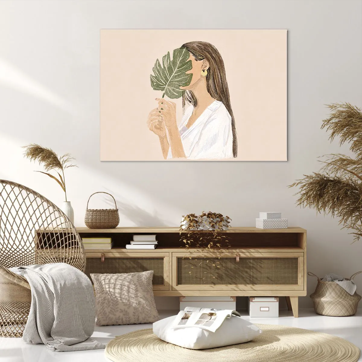Vászonkép - Titokzatos portré legyezővel - 100x70 cm