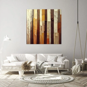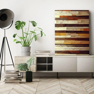 - Ez a festmény fa és arany árnyalatú geometrikus kompozíciót ábrázol. Stílusos és elegáns motívum, amely tökéletes modern belső terekbe, például nappaliba, irodába vagy hálószobába.