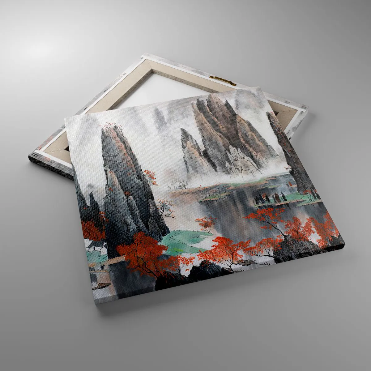 A vászon a keretre van feszítve. Az oldalak és a szélek nyomtatva vannak, a kép folytatását alkotva. A kép készen áll a falra akasztásra. Minden termékhez tartozik egy, a kerethez rögzített akasztó és egy rögzítőkészlet (csavar + dübel).