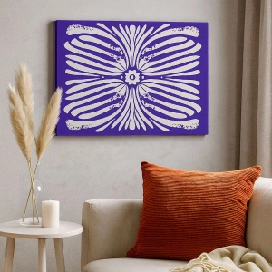 • Ez a festmény egy etnikai mintát ábrázol lila és fehér árnyalatokban. Minimalista és elegáns dekoráció, amely harmóniát és egyedi stílust visz bármilyen enteriőrbe.