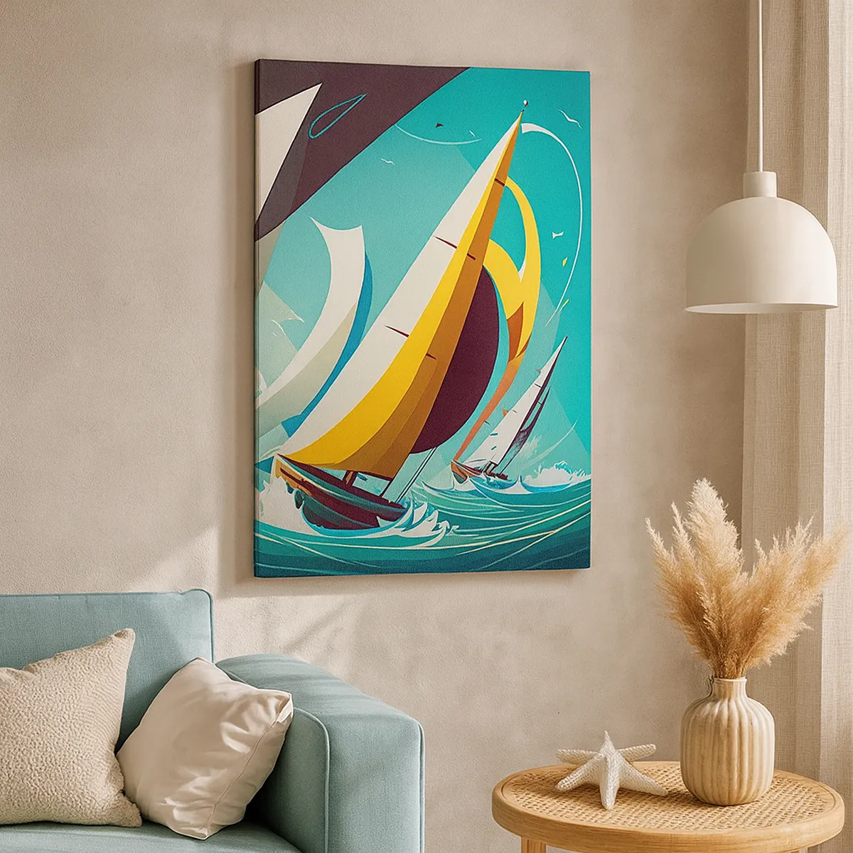 • Vitorlások, Regatta, Tengeri, Hajózási, sport és hobbi, Az ebédlőbe, a fürdőszobába, az ifjúsági szobába, az előszobába, a nappaliba, a hálószobába, Fehér, barna, kék, sárga, Függőleges