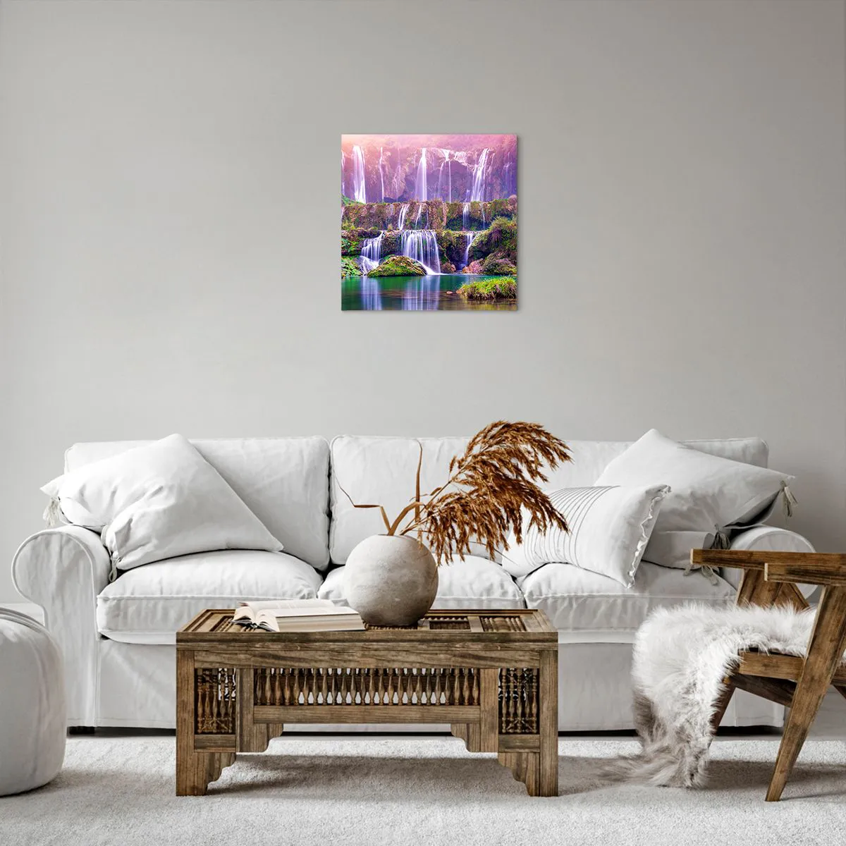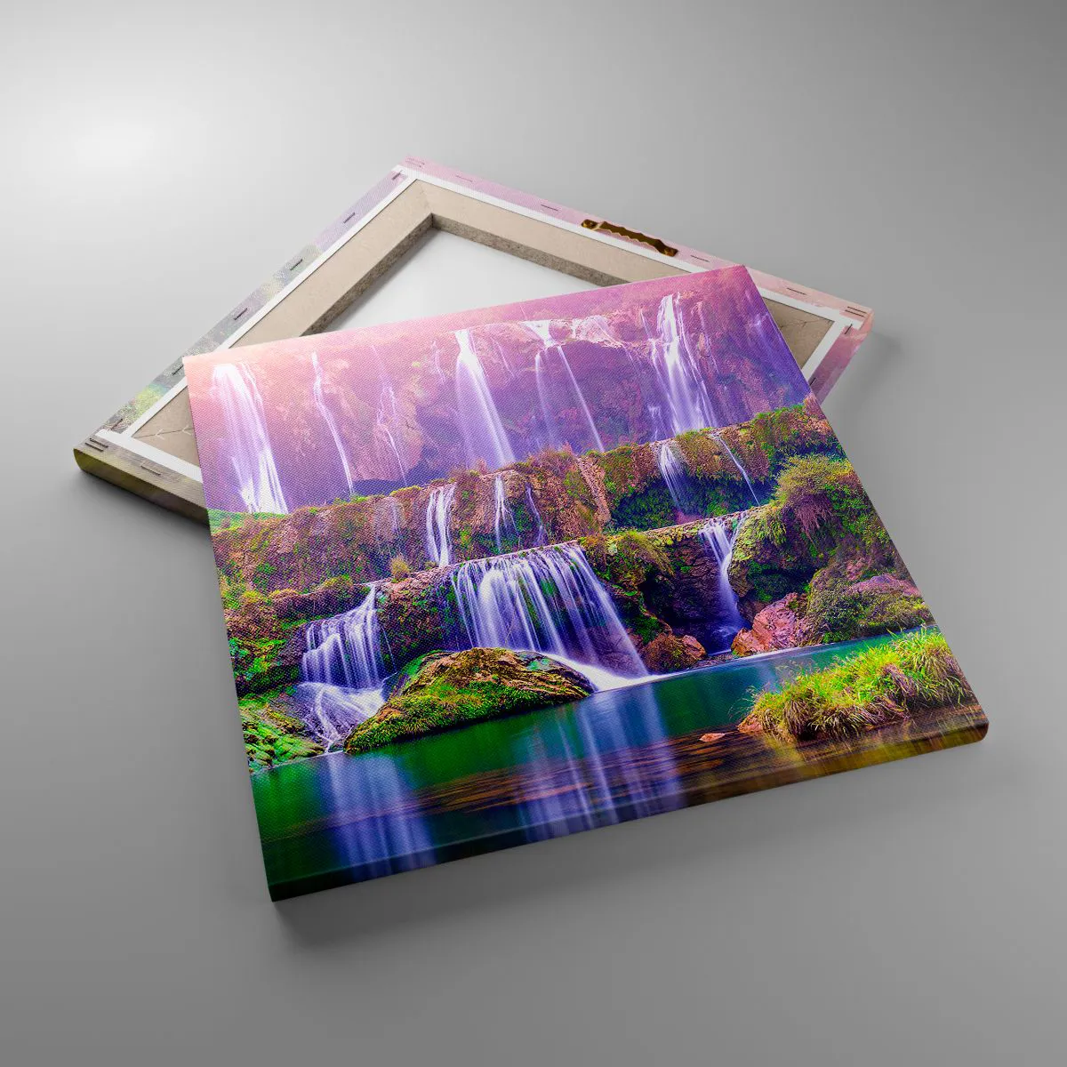 A vászon a keretre van feszítve. Az oldalak és a szélek nyomtatva vannak, a kép folytatását alkotva. A kép készen áll a falra akasztásra. Minden termékhez tartozik egy, a kerethez rögzített akasztó és egy rögzítőkészlet (csavar + dübel).