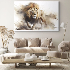 Vászonkép - Dinamikus portré egy oroszlánról természetes színekben. - 70x50cm - A király elindult - Modern fali dekoráció nappalihoz és hálószobához ARTTOR
