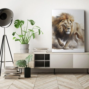 - A festmény egy dinamikus portrét ábrázol egy oroszlánról természetes színekkel, bemutatva az állatok királyának erejét és fenségét. Tökéletes modern vagy klasszikus hangulatú enteriőrökbe.