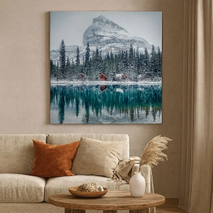 A "Kanadai menedék" tökéletes választás azok számára, akik egy csipetnyi téli varázslatot és természeti szépséget szeretnének vinni az enteriőrjükbe. A finom tájképi részletek, mint például a havas fák és a tó befagyott felszínén tükröződő képek, vonzzák a tekintetet és békés légkört teremtenek.