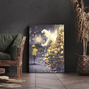 A vászon a keretre van feszítve. Az oldalak és a szélek nyomtatva vannak, a kép folytatását alkotva. A kép készen áll a falra akasztásra. Minden termékhez tartozik egy, a kerethez rögzített akasztó és egy rögzítőkészlet (csavar + dübel).