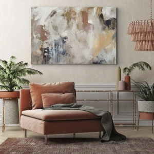 Vászonkép - Absztrakt foltok tompa bézs és arany árnyalatokban - 70x50cm - Ködös absztrakció - Modern fali dekoráció nappalihoz és hálószobához ARTTOR