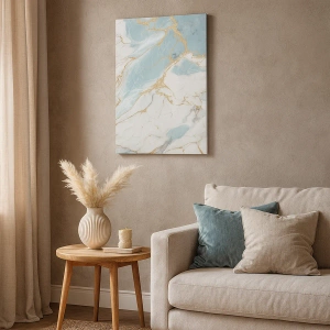 A "Kék márvány arany díszítéssel" vászonkép egyedülálló ajánlat a finom szín- és struktúrakombinációk kedvelőinek. A finom kék és fehér tónusok harmonizálnak egymással, márványhatást keltve, amely a bonyolultan hozzáadott arany erekkel kombinálva kifinomult jelleget kölcsönöz az egésznek.
