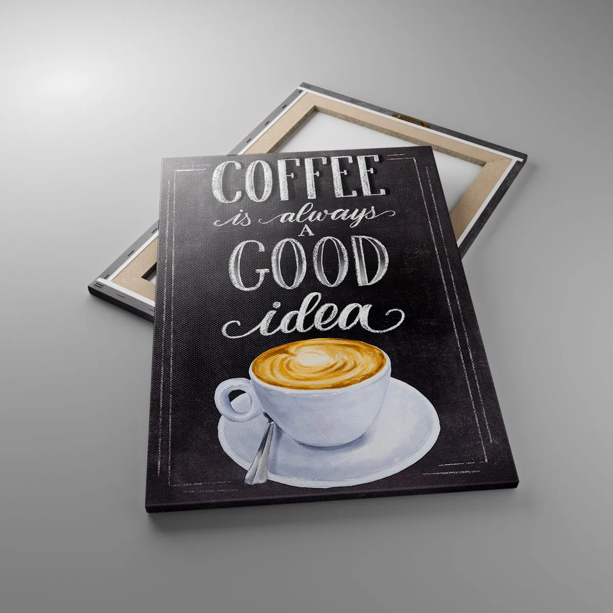 A vászon a keretre van feszítve. Az oldalak és a szélek nyomtatva vannak, a kép folytatását alkotva. A kép készen áll a falra akasztásra. Minden termékhez tartozik egy, a kerethez rögzített akasztó és egy rögzítőkészlet (csavar + dübel).