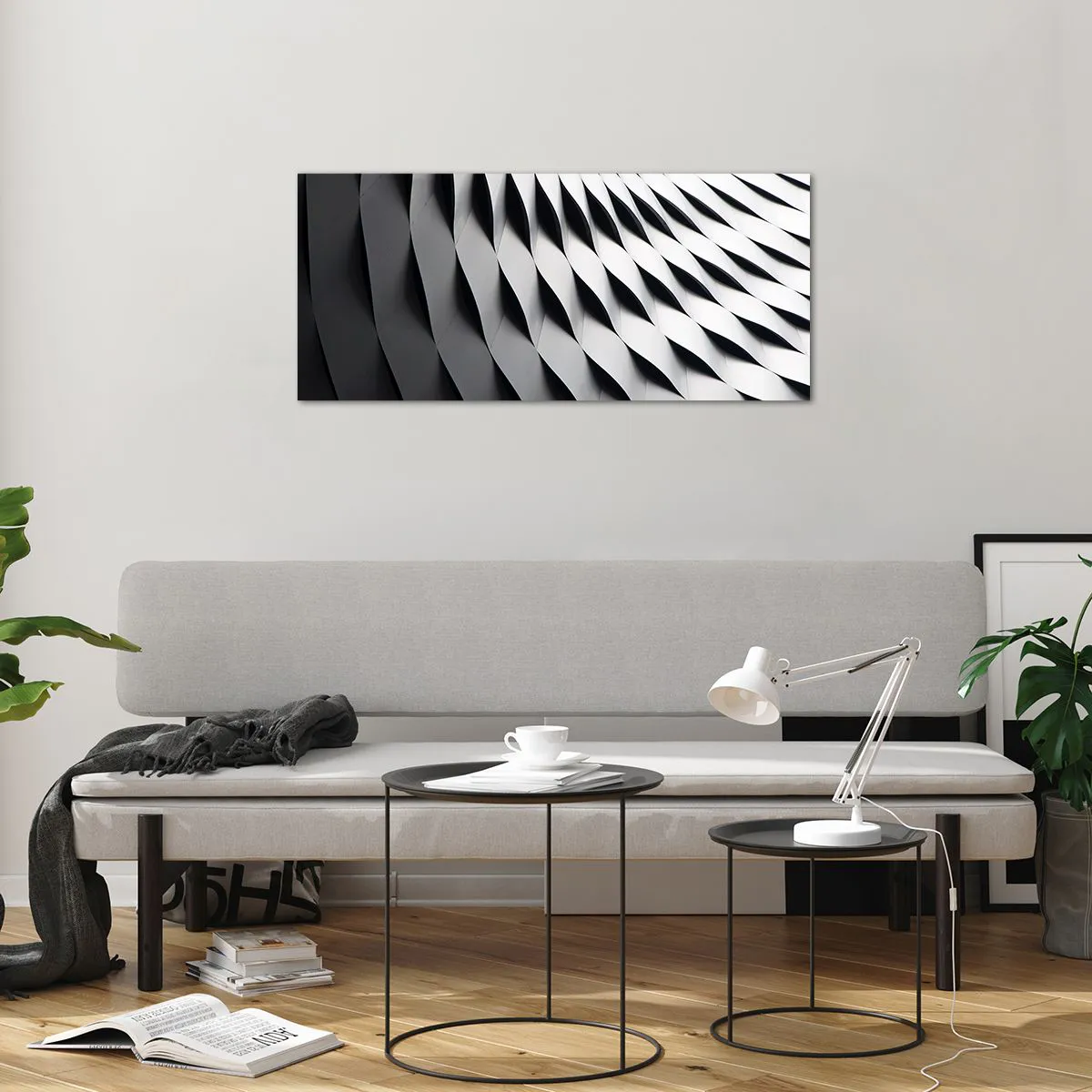 • Modern, absztrakt, acél, 3D, absztrakt, fekete-fehér, Irodába, dolgozószobába, étkezőbe, előszobába, nappaliba, hálószobába, Szürke, fekete-fehér, Panoramikus