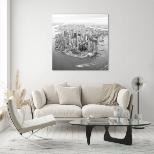 Üveg kép - A város madártávlatból fekete-fehérben - 70x50cm - Hogy ne szeretném? - Modern fali dekoráció nappalihoz és hálószobához ARTTOR