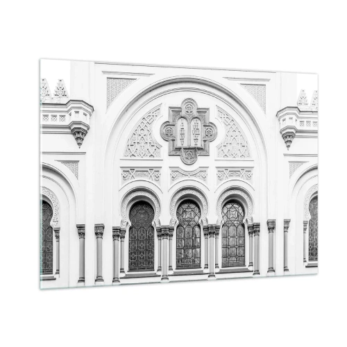 Az üvegkép a részletekre való legnagyobb odafigyeléssel, modern nyomtatási technológiák alkalmazásával készül - ez garantálja a természetes színek megőrzését és a magas színtelítettséget. A festmény felülete ellenáll a nap UV sugarainak.A képek üvegre gyártása több szakaszban történik. Kiváló minőségű nyomat és két védőréteg termikusan kötődik az üveghez. Erre a célra az üveg lamináló kemencék innovatív technológiáját alkalmazzuk, vákuum környezetben.