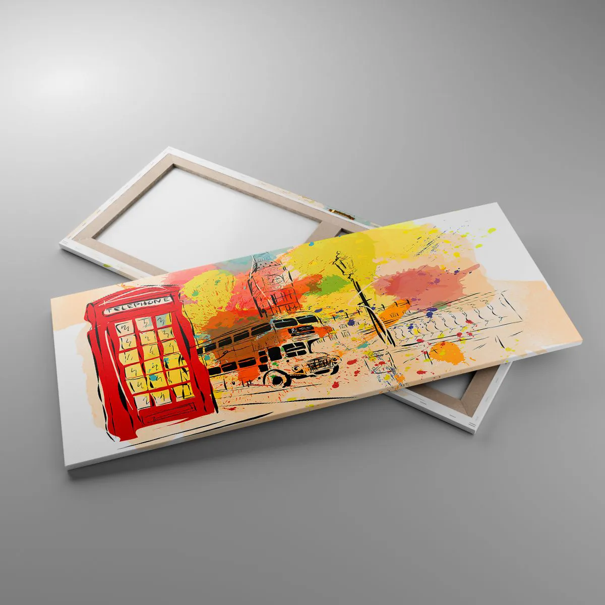 A vászon a keretre van feszítve. Az oldalak és a szélek nyomtatva vannak, a kép folytatását alkotva. A kép készen áll a falra akasztásra. Minden termékhez tartozik egy, a kerethez rögzített akasztó és egy rögzítőkészlet (csavar + dübel).
