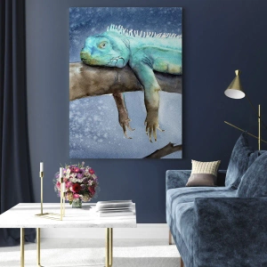 Üveg kép - Kék leguán feküdt egy ágon akvarell stílusban - 70x50cm - Ez jó! - Modern fali dekoráció nappalihoz és hálószobához ARTTOR