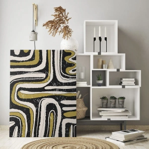 Üveg kép - Absztrakt minták fekete, fehér és arany színben - 70x50cm - Kompozíció: traktusok és sikátorok - Modern fali dekoráció nappalihoz és hálószobához ARTTOR