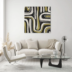 A vonalak és görbék motívuma a városi dzsungelhez, utakhoz és sikátorokhoz köthető, amelyek egyszerre szervezik a teret és káosz érzetét keltik. A festmény értelmezésre késztet – mindenki mást láthat benne. Az arany díszítéseknek köszönhetően a kompozíció eleganciát és nemességet kölcsönöz, így kiváló faldekorációvá válik mind a modern, mind a klasszikusabb enteriőrök számára.