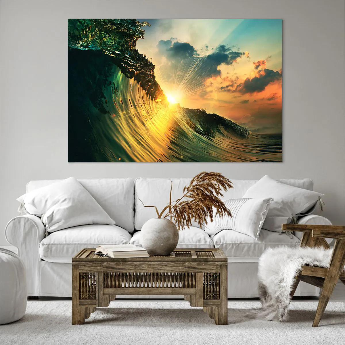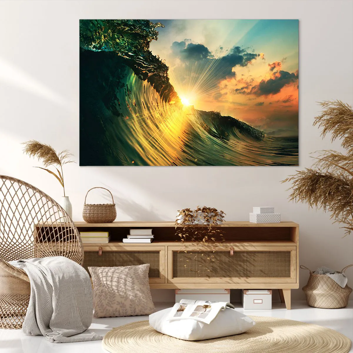 • Tengerhullám, Napsugarak, Természet, Természet, pasztell, Irodába, dolgozószobába, étkezőbe, fürdőszobába, előszobába, nappaliba, hálószobába, Narancs, zöld, Szintek