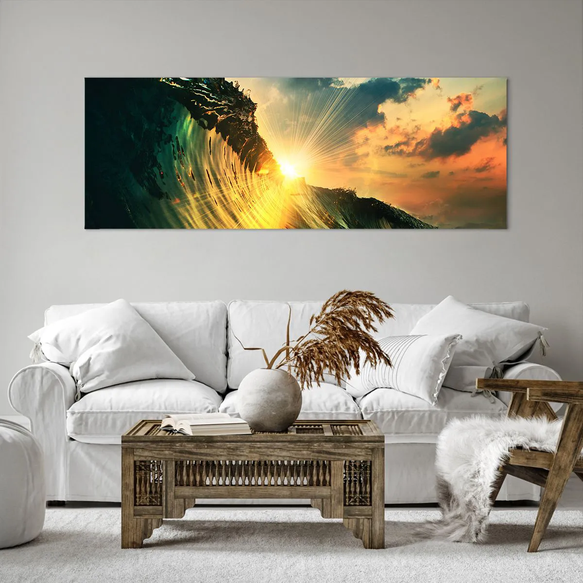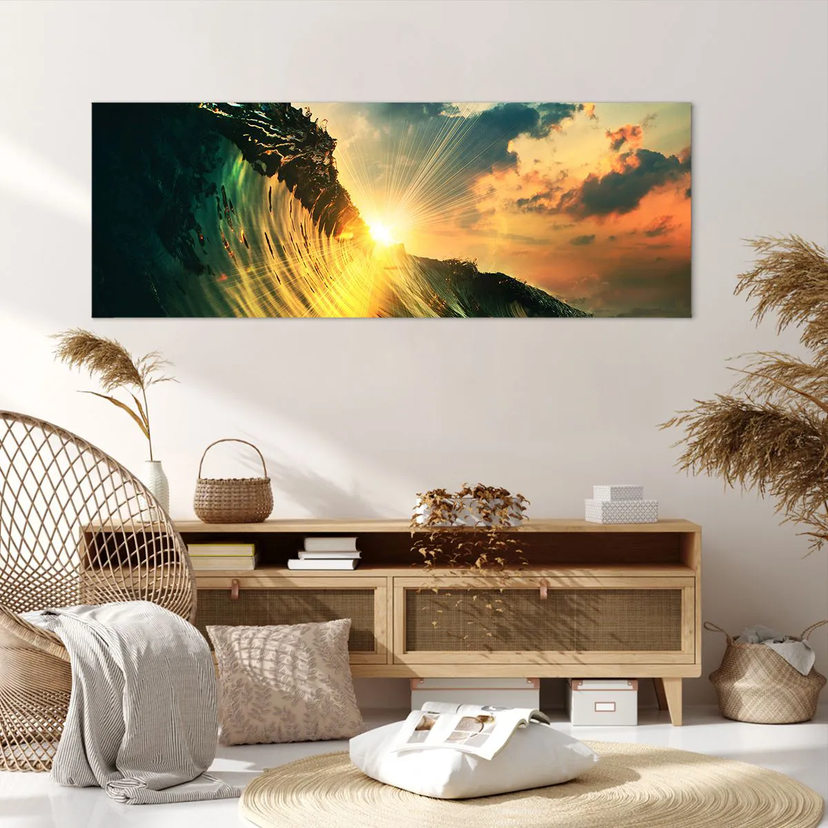 • Tengerhullám, Napsugarak, Természet, Természet, pasztell, Irodába, dolgozószobába, étkezőbe, fürdőszobába, előszobába, nappaliba, hálószobába, Narancs, zöld, Panoramikus