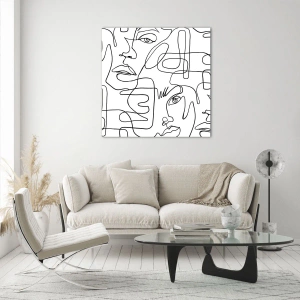 Üveg kép - Fekete-fehér vonalas arcgrafikák - 70x50cm - Összegabalyodott érzelmekben - Modern fali dekoráció nappalihoz és hálószobához ARTTOR